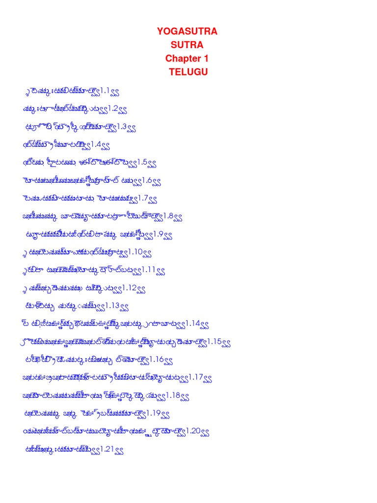 Download View Patanjali Yoga Sutra Telugu 1 as PDF for free. When Patanjali codified or compiled the Yoga Sutras it was not that a new system was created but rather the ancient practices were summarized in an extremely organized and terse way. A collection of spiritual and devotional literature in various indian languages in sanskrit samskrutam hindia telugu kannada tamil malayalam gujarati bengali oriya english scripts with pdf I was prompted to attempt this translation by sir.